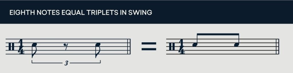 这是因为摇摆节奏在音乐记谱中写作八分音符,但实际上它们被演奏得像是中间有休止符的三连音。从根本上说,音乐符号将这些写法等同于摇摆节奏。