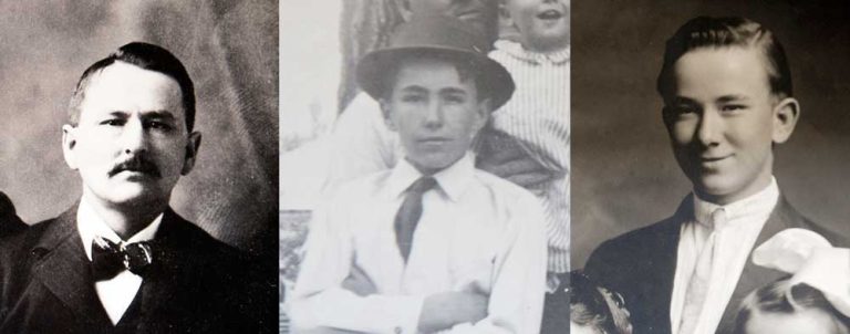 从左到右,约翰·G·莫里森 (John G. Morrison)、阿林·莫里森 (Arling Morrison) 和梅林·莫里森 (Merlin Morrison) 于 1914 年 1 月 10 日晚上在他们的杂货店工作。约翰和阿林都被蒙面男子杀害。