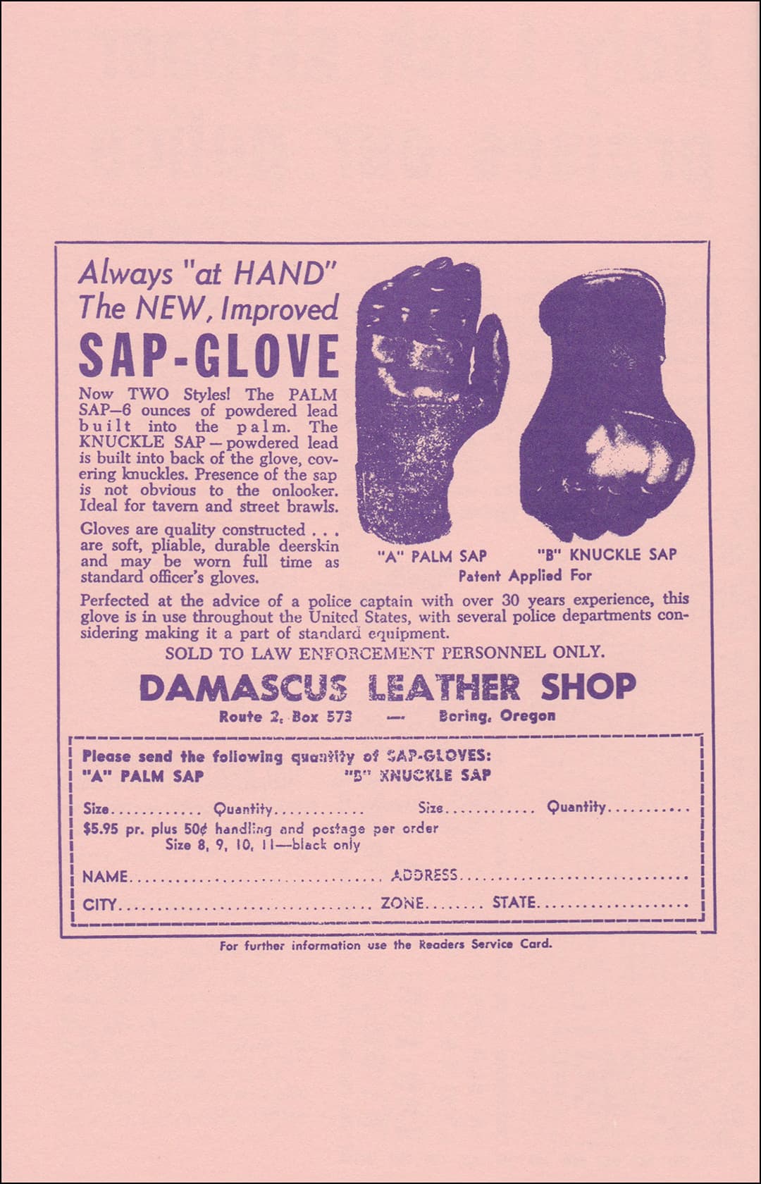 第七期名为《审视白人问题》(A Look at the White Problem):封面是 1852 年《Yankee Notions》中的一幅种族主义插画;封底是一张白人警察咧嘴笑、带着摇晃且咬人的狗的照片。第八和第九期(此时图利只展示自己的作品)讽刺医疗与美容产业;第十期封面上写着“为和平而杀”(Kill For Peace),是最长、最打动人心的一期。之后,图利想让声音更响亮,于是与诗人、激进分子兼 Peace Eye 书店创始人埃德·桑德斯(Ed Sanders)组建了乐队 The Fugs,最终在全国反战抗议中演出,并惹恼了 FBI。