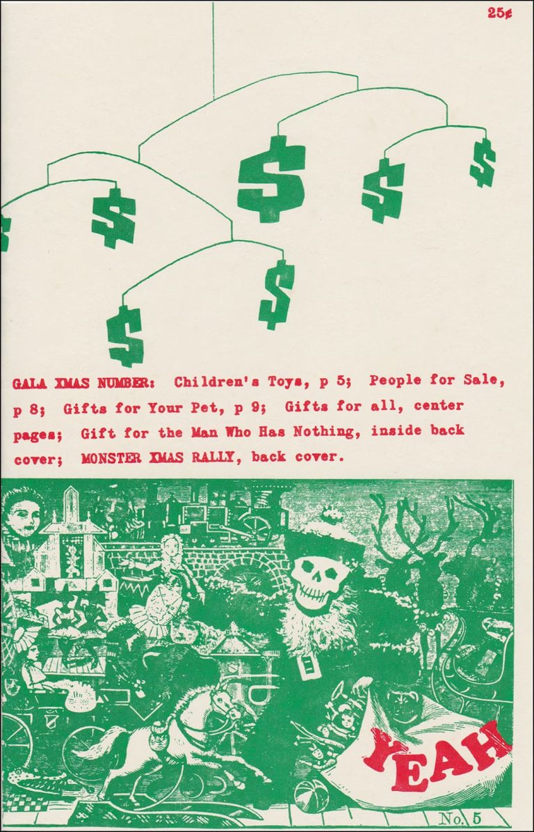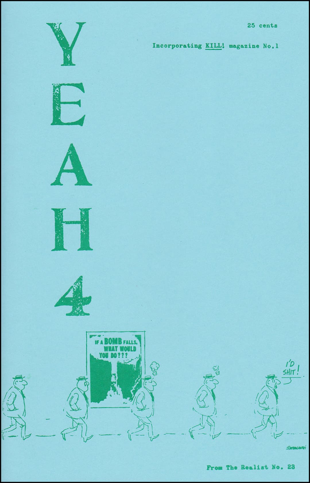 《Yeah!》是美国反文化诗人、漫画家、出版人及地下摇滚乐队 The Fugs 的创始成员之一 Tuli Kupferberg 与妻子 Sylvia Topp 于 1961 至 1965 年间共同编辑的自制小杂志。该杂志由他们的 Birth Press 出版社出版,采用油印方式制作,体现了当时纽约下东区(Lower East Side)反主流文化的精神。