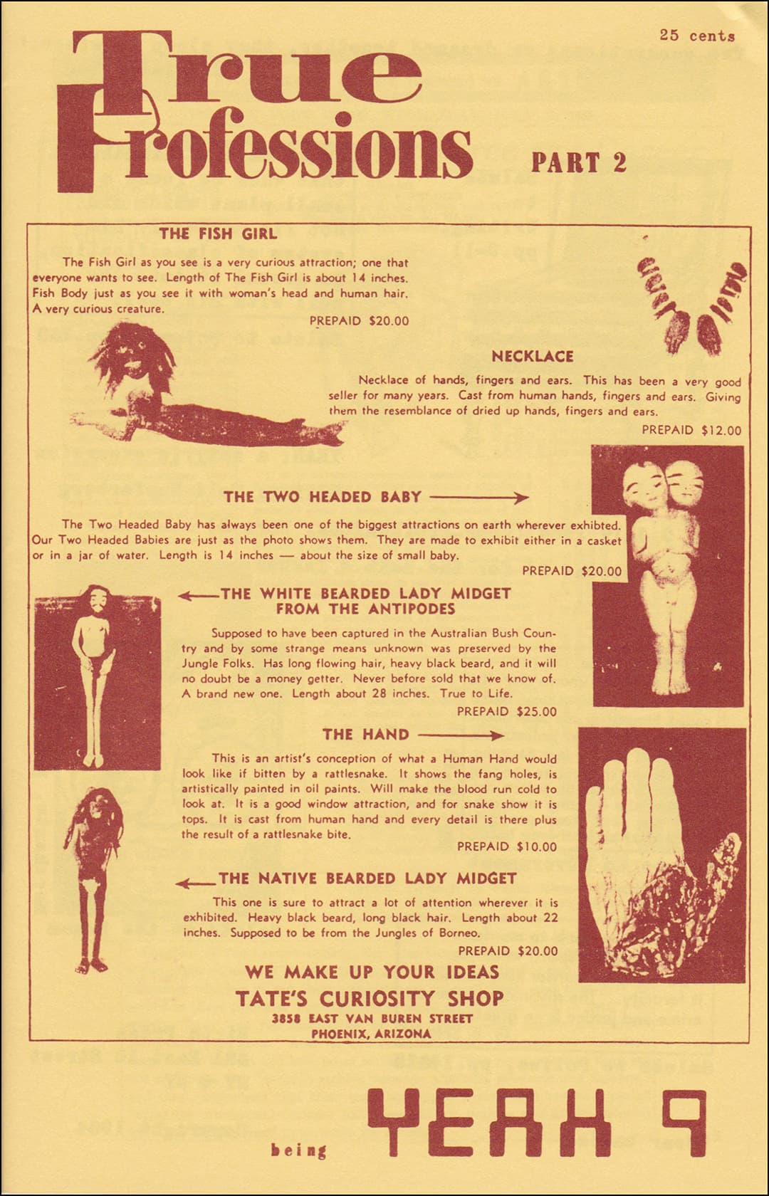 《Yeah!》只是他在自己创办的 Birth Press 出版的一系列刊物之一,但可能是既最具地方色彩又最广泛影响的一本:在《Yeah!》里,你可以读到吉姆·塔利(Jim Tully)关于在机动车管理局(DMV,美国机动车管理局,以排长队著称,这里用作幽默化的日常生活困境)排队的地狱般体验的老诗、贝托尔特·布莱希特(Bertolt Brecht)关于邪恶的押韵诗、一位不知名村庄居民的欲望颂歌,以及一篇前朋克、反冷战的拼贴作品。
