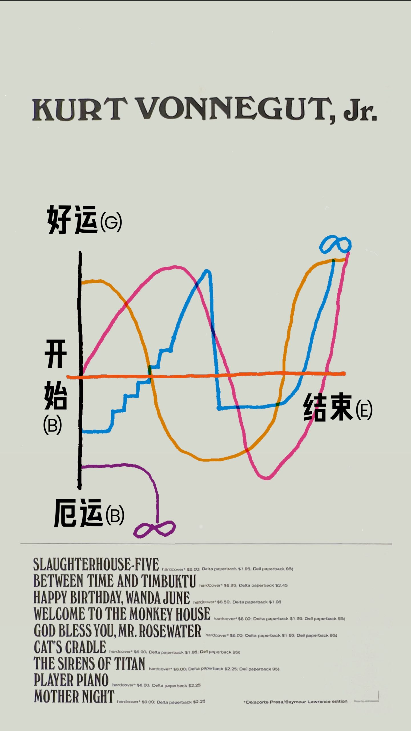 “故事形状”(story shapes 或 shapes of stories)是 Kurt Vonnegut 在讲述文学结构时提出的一个概念,用来 可视化故事情节的情绪起伏或“人生曲线”。简单来说,它是把故事 人物的幸福/不幸状态随时间的变化 画成一条曲线。
